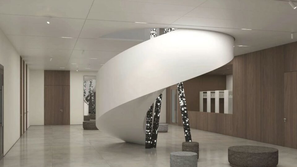 В Красноярске в «Суриков-центре» начали делать винтовую лестницу