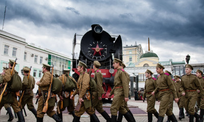 В воскресенье, 5 октября, в центре Красноярска при поддержке городской администрации состоялась реконструкция проводов Восьмой Сибирской стрелковой дивизии на фронт Первой мировой войны.