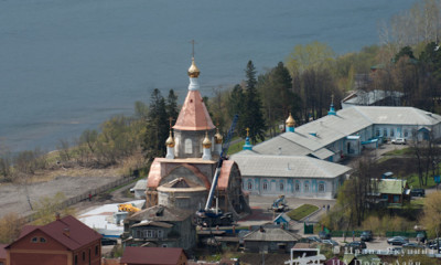17 мая в поселке Удачный освятили, подняли и утвердили на храме в честь иконы Божией Матери «Всецарица» в Свято-Успенском мужском монастыре Красноярска Великий Крест, зазвонный колокол и центральный купол.